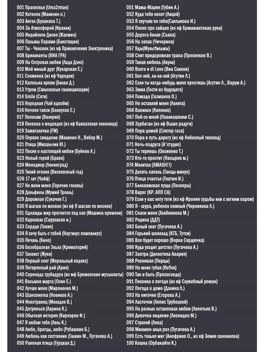 100% караоке хит 2 (Караоке DVD). Особенность данного диска в том, что он может быть воспроизведен на любом DVD-плеере, домашнем кинотеатре или музыкальном центре, читающем DVD диски.