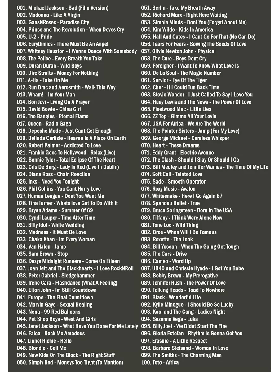 Видеоклипы на DVD 100 Лучших клипов 80-х (Top 100 Videos 80's) (Для любого DVD плеера)