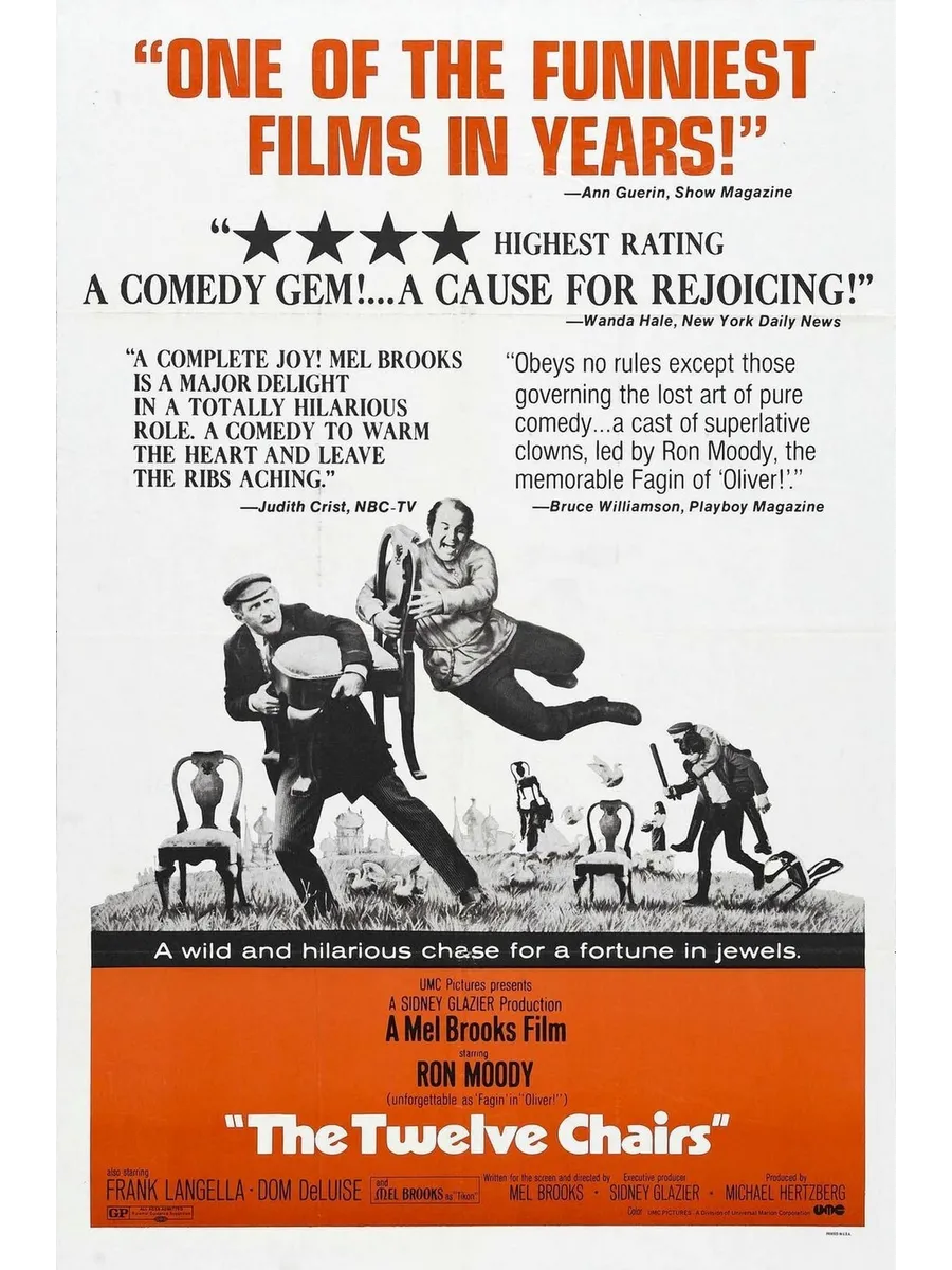Бывший дворянин, а после Революции — канцелярская крыса Ипполит Матвеевич Воробьянинов узнает от своей умирающей тещи тайну ее дореволюционных бриллиантов, спрятанных в один стул из двенадцати. Обладателем этого секрета становится и местный священник, отец Федор, пришедший к Клавдии Ивановне, чтобы её исповедать. Священник и дворянин бросаются на поиски мебели с драгоценностями. Ипполит Матвеевич кооперируется с бродячим ловеласом и шарлатаном Остапом Бендером.