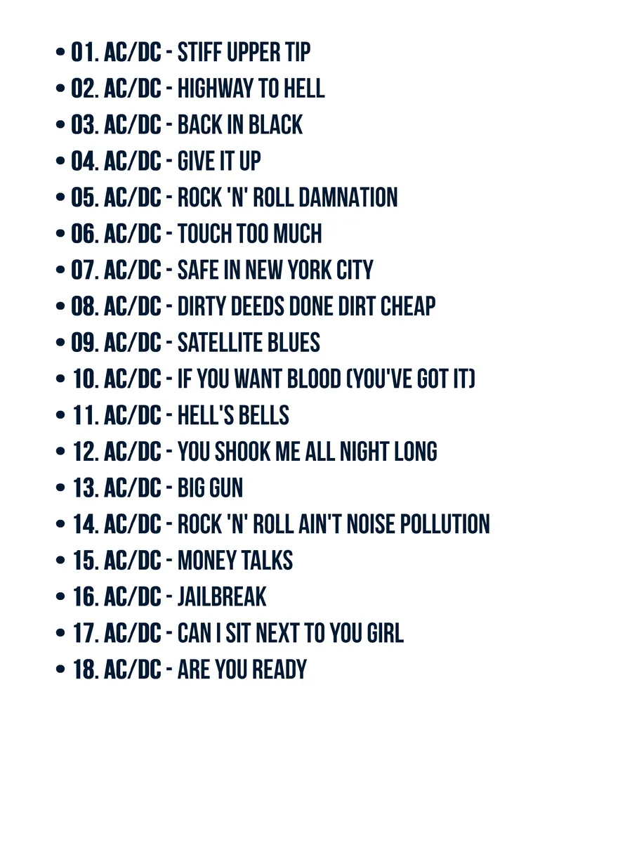 Погрузитесь в мир легендарного рока с AC-DC Greatest Hits '2000! Этот MP3-USB диск станет вашим портативным пропуском в мир electrifying music, где вас ждут все самые культовые хиты группы. Наслаждайтесь любимыми треками AC-DC в формате MP3, где бы вы ни находились. Удобный USB-формат позволяет легко подключить диск к любому устройству с USB-портом, будь то компьютер, автомобильная магнитола или портативная колонка. Переживите заново энергетику стадионов и почувствуйте драйв рок-н-ролла с AC-DC Greatest Hits '2000!