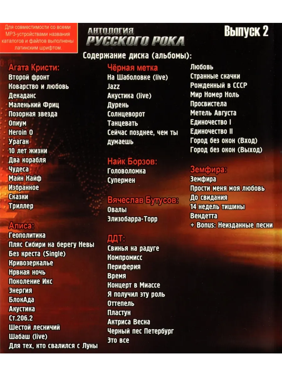 Антология Русского Рока, выпуск 2 (MP3-USB) - это ваш ключ к легендарным звукам отечественной рок-музыки. На этой флешке USB вы найдете сборник лучших треков от культовых российских рок-групп, которые подарят вам незабываемые эмоции и погрузят в атмосферу настоящего рока. Удобный формат MP3 позволит наслаждаться музыкой в любом месте и в любое время, будь то дома, в дороге или на природе. Откройте для себя мир русского рока и добавьте в свою коллекцию этот уникальный сборник.