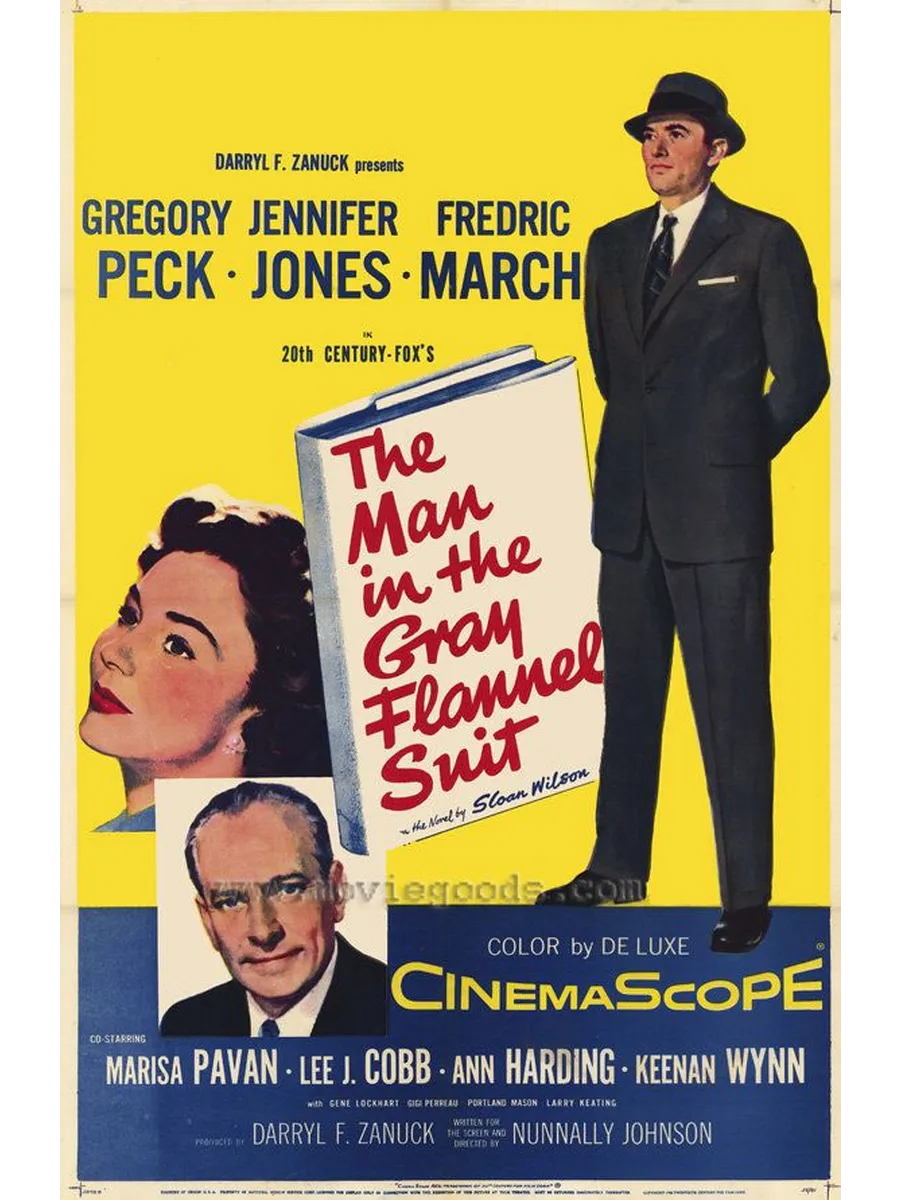 Это история Тома Рэта, молодого американца, получающего шанс стать большим человеком, но отказывающемся от него, понимая, что он человек семейный и ему спокойней работать каждый день с девяти до пяти. Семья для него значит больше, чем успех. Это также история человека, у которого есть совесть. В Риме во время войны у него была любовная связь, в результате которой появился ребенок. Том тяжело переживает военные годы — замерзая от холода, он убил ножом немца, чтобы раздобыть шинель, неудачно бросил гранату, убив лучшего друга…