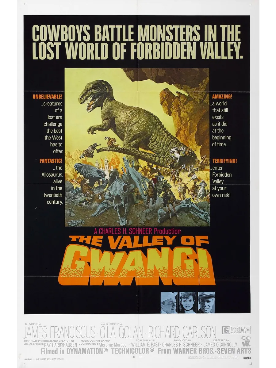 В Мексиканской пустыне, окружённой неприступными горами, ковбои во главе с Таком Кирби обнаруживают долину, населённую доисторическими животными. Под руководством палеонтолога, профессора Хораса Бромли, они решают поймать аллозавра по имени Гванги, чтобы показывать его в цирке, но во время представления храброму ящеру удаётся убежать…