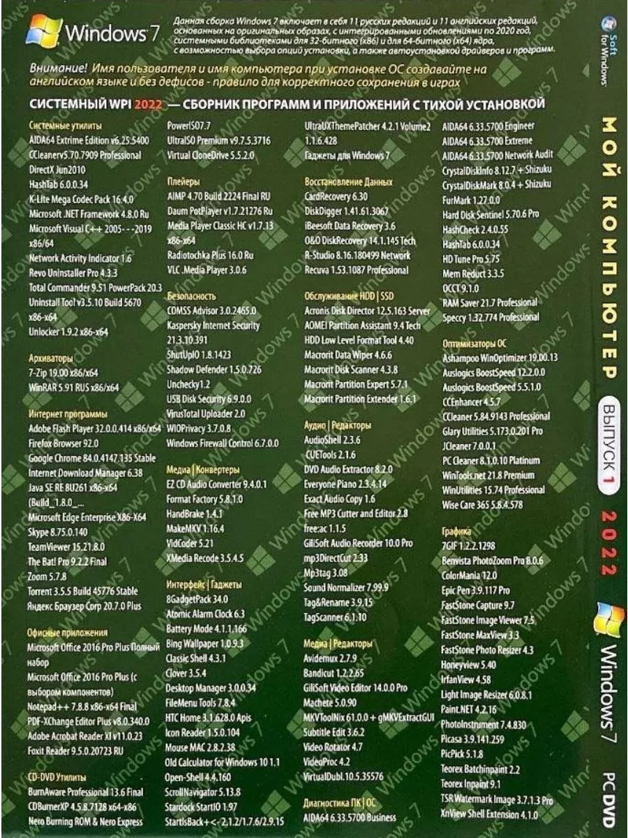 DVD диск (Windows 7 + WPI Программы на кажный день).