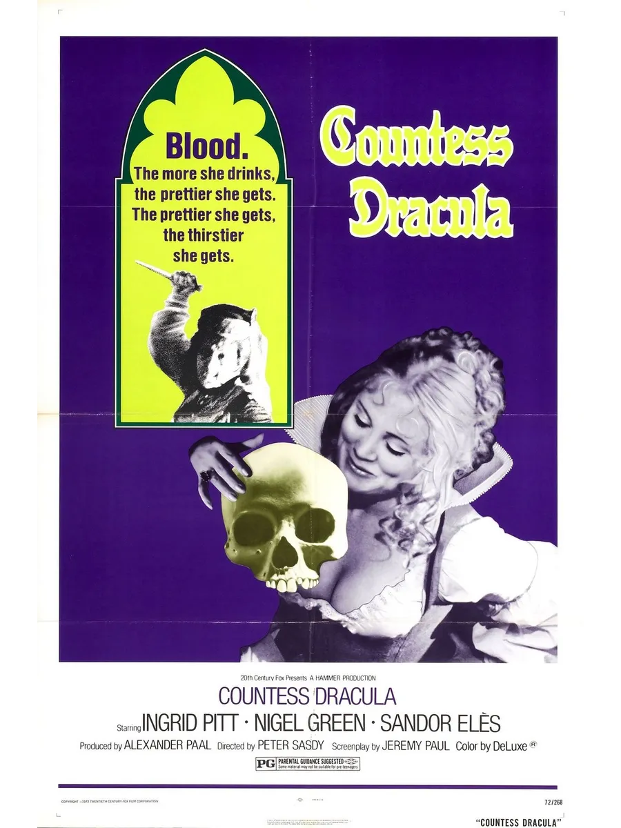Потеряв мужа, графиня Элизабет с горя начинает увлекаться чёрной магией и начинает практиковать купание в крови девственниц, помогающее вернуть молодость и красоту. Вскоре она встречает нового потенциального мужа — симпатичного лейтенанта, но тот, узнав о кровожадных пристрастиях Элизабет, решает повременить со свадьбой.