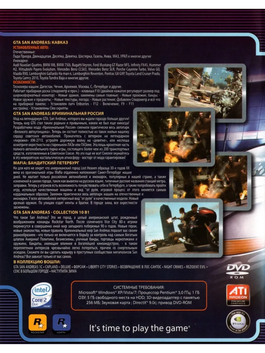 GTA Криминальная Россия — это увлекательная игра для ПК, которая перенесет вас в мир российского криминала. Исследуйте виртуальный город, выполняйте задания, участвуйте в захватывающих погонях и сражениях. Игра на DVD диске, совместимая с PC, позволит вам окунуться в атмосферу криминального мира, где каждый ваш выбор имеет значение. Погрузитесь в захватывающий сюжет и испытайте себя в роли гангстера в GTA Криминальная Россия.