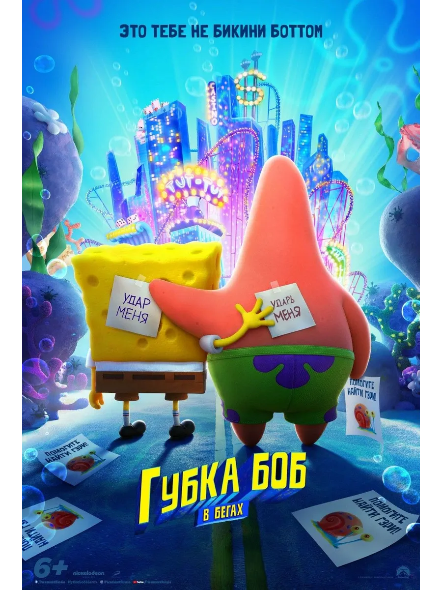 Гэри, любимая улитка Губки Боба, похищен! Героя вквадратных штанах, его лучшего друга Патрика иостальных членов бандыиз Бикини Боттом ждет эпическое приключение, входе которого они попадут вЗатерянный город Атлантик-Сити. Уморительная спасательная миссияпо возвращению Гэри домой смассой опасностей ирадостейна пути докажет Губке Бобу иего приятелям, что даже под водой нет силы более мощной, чем сила дружбы.