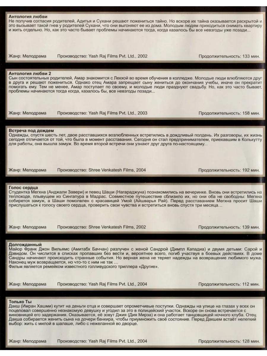 Индийское кино 6 в 1 Анатомия Любви (DVD-R)