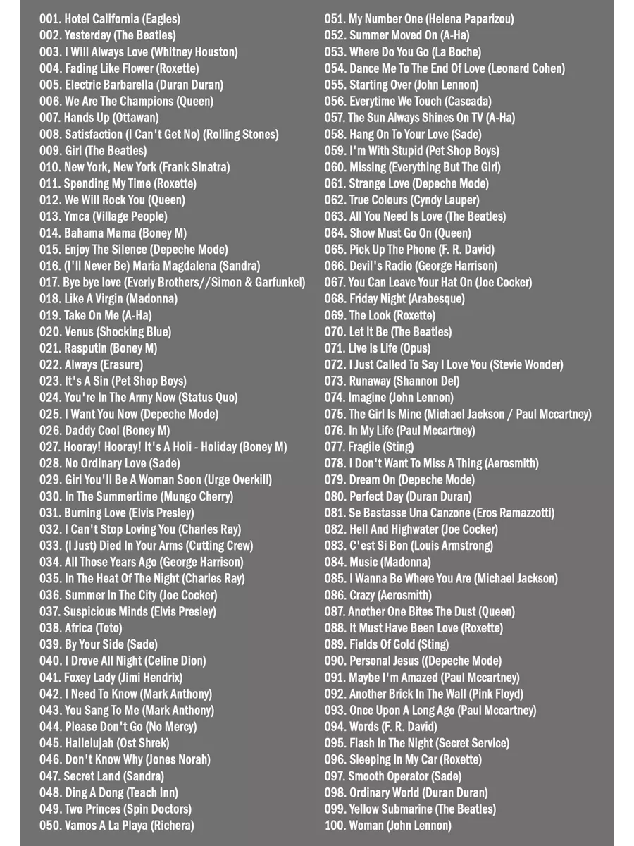 Легендарные песни западных исполнителей (Караоке на DVD)