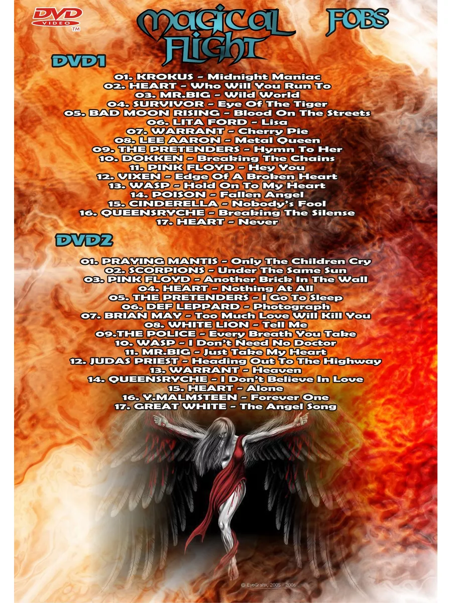 Magical Flight Vol.6 (34 Клипа), Rock Hard Rock Heavy (Клипы DVD). Особенность данного диска в том, что он может быть воспроизведен на любом DVD-плеере, домашнем кинотеатре или музыкальном центре, читающем DVD диски.
