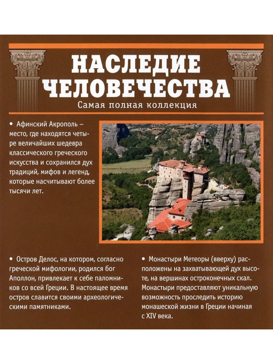 Это новая вдохновляющая коллекция для тех, кто любит природу, путешествия и увлекается историей.Все достопримечательности, которые вы встретите на страницах журнала, включены в Список объектов Всемирного наследия ЮНЕСКО.Каждый номер журнала комплектуется DVD, повествующим о мировых культурных сокровищах и достижениях цивилизаций. Новая вдохновляющая коллекция для тех, кто любит природу, путешествия и историю.