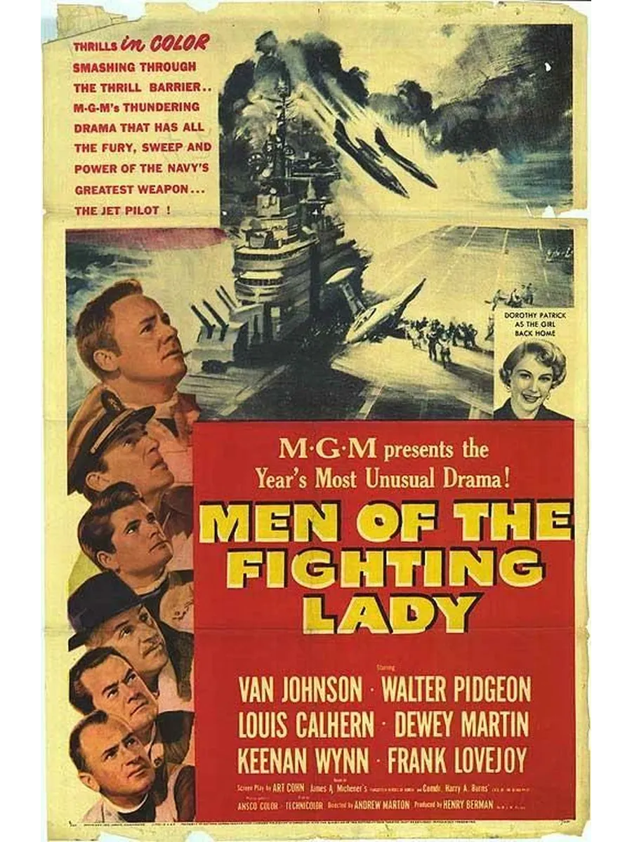 Американская военная драма 1954 года режиссера Эндрю Мартона с Ван Джонсоном, Уолтером Пидженом, Луисом Калхерном и Кинаном Уинном в главных ролях. Сценарий был написан командующим ВМС США Гарри А. Бернсом, который написал для Saturday Evening Post статью "Дело ослепленного пилота", рассказывающую о пилоте ВМС США во время Корейской войны, который спасает ослепленного пилота ВМС, уговорив его совершить успешную посадку. "Мужчины сражающейся леди" также были вдохновлены другой статьей Saturday Evening Post, "Забытые герои Кореи" Джеймса А. Миченера. Оригинальную музыкальную партитуру сочинил Миклош Рожа. Также известна как эскадрилья "Пантеры"...