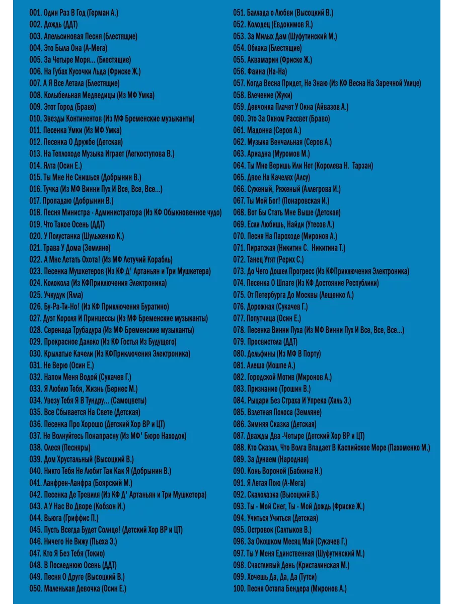 Песни на все времена (Караоке DVD). Особенность данного диска в том, что он может быть воспроизведен на любом DVD-плеере, домашнем кинотеатре или музыкальном центре, читающем DVD диски.