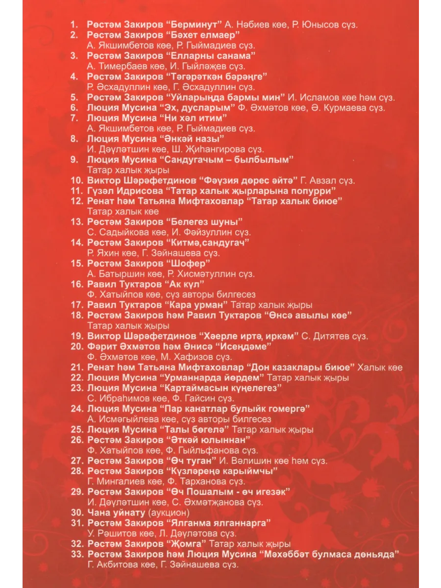Рустем Закиров и Люция Мусина (Клипы DVD). Особенность данного диска в том, что он может быть воспроизведен на любом DVD-плеере, домашнем кинотеатре или музыкальном центре, читающем DVD диски.