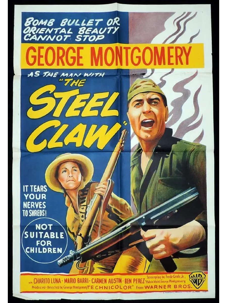 Военная драма 1961 года, действие которой разворачивается на Филиппинах во время Второй мировой войны. Это приключенческий фильм о бывшем морском пехотинце-инвалиде, выполняющем миссию по спасению офицера в первые дни японского вторжения. Режиссером и соавтором сценария фильма "Стальной коготь" выступил его звезда Джордж Монтгомери.