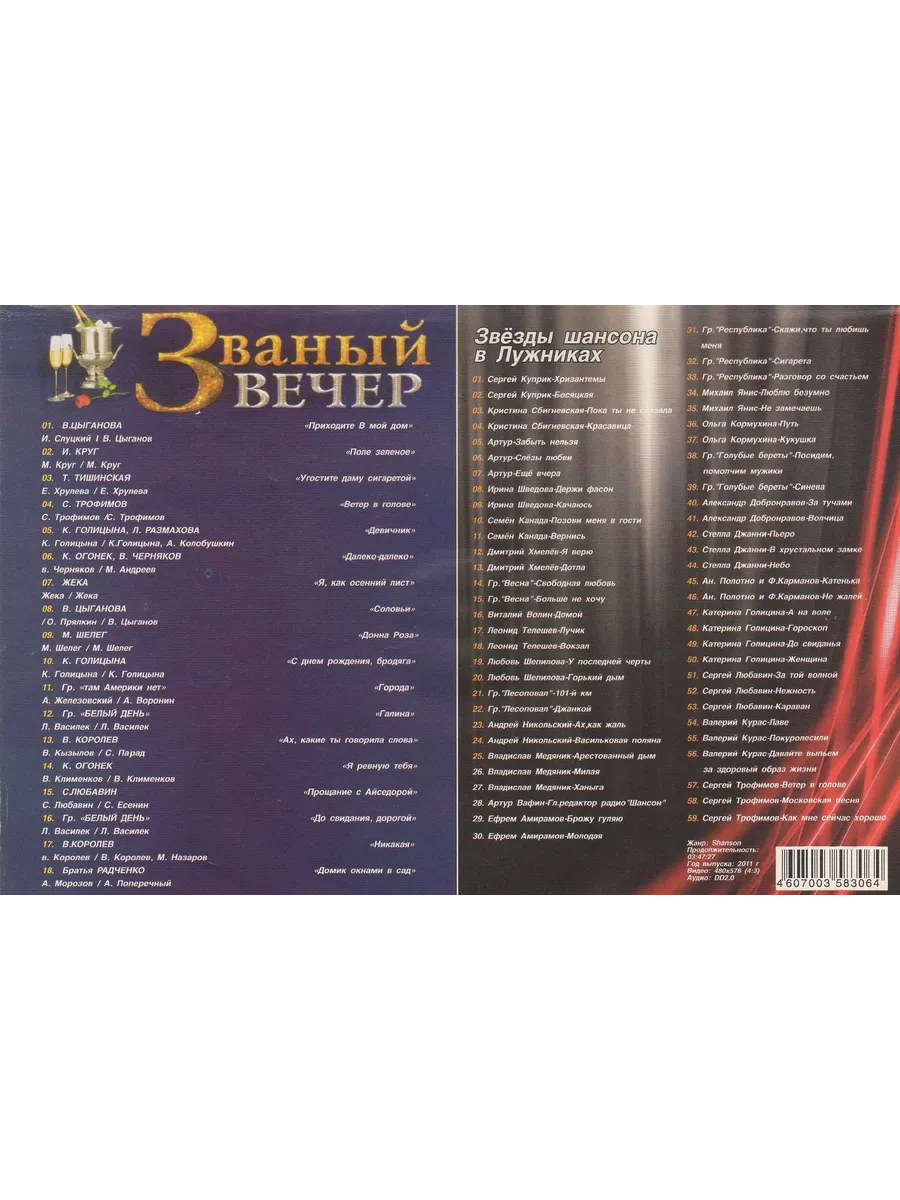 Звезды шансона - Званый вечер (КЛИПЫ на DVD)